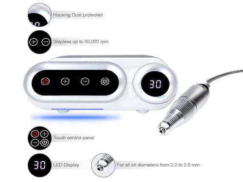 The electric nail cutter has a very high ease of use, a low-noise handpiece with minimal vibration and both clockwise and anti-clockwise rotation. The integrated overheating protection can extend the life of the device.